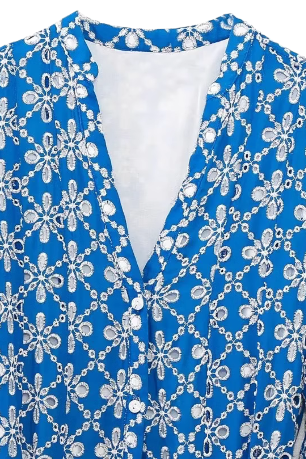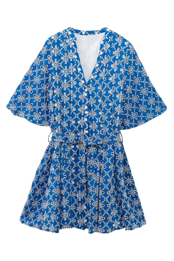 Goodnight Gihpa ‘Sapphire’ V-Neck Embroidery Short Dress